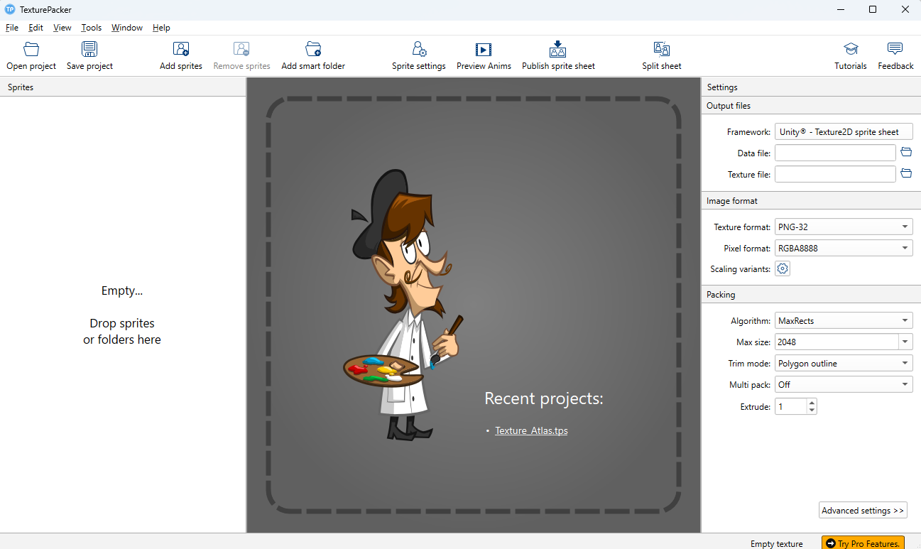 유니티 에디터는 잠깐 옆에 두고 TexturePacker 응용프로그램 다운로드 해야 한다.(링크)