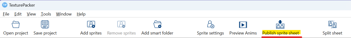 잘 만들어졌다면 [Publish sprite sheet]를 눌러서 프로젝트 안에 저장을 하면 된다. 프로젝트에 저장을 하면 처음에 에셋 스토어에서 받았던 스크립트가 자동으로 Texture Atlas를 찾고 적용하여 따로 수동으로 할 것은 없다고 한다.