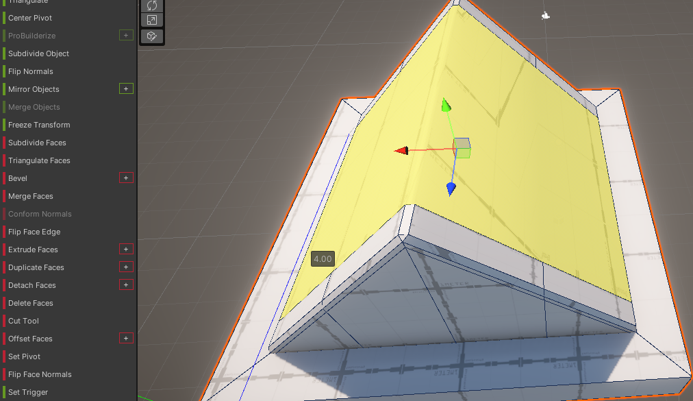 지붕을 가로지르는 횡단선을 Connect Edges로 두개 만든 후 양 옆으로 이동. 아랫면도 동일하게