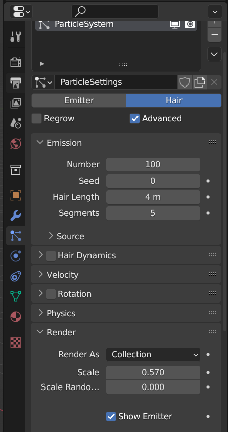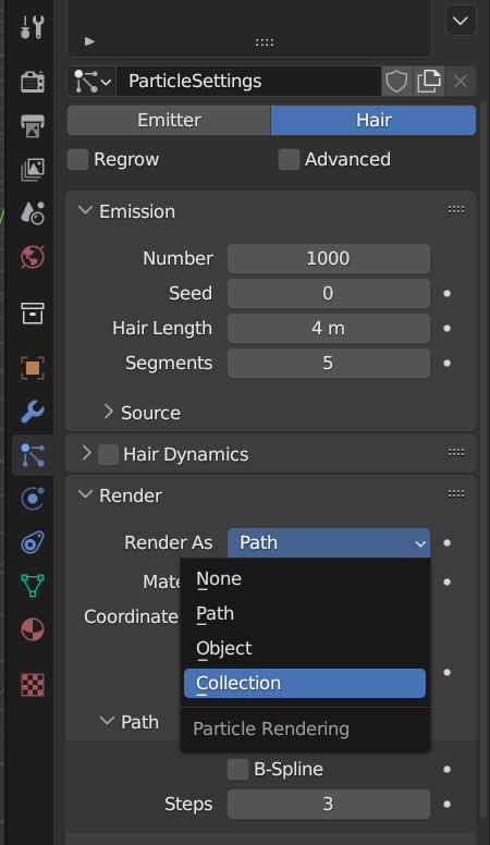 기본 설정은 [Emitter]로 되어있는데, 나무는 발사하는 것이 아니라 생성하는 것이기 때문에 [Hair]로 변경한다.