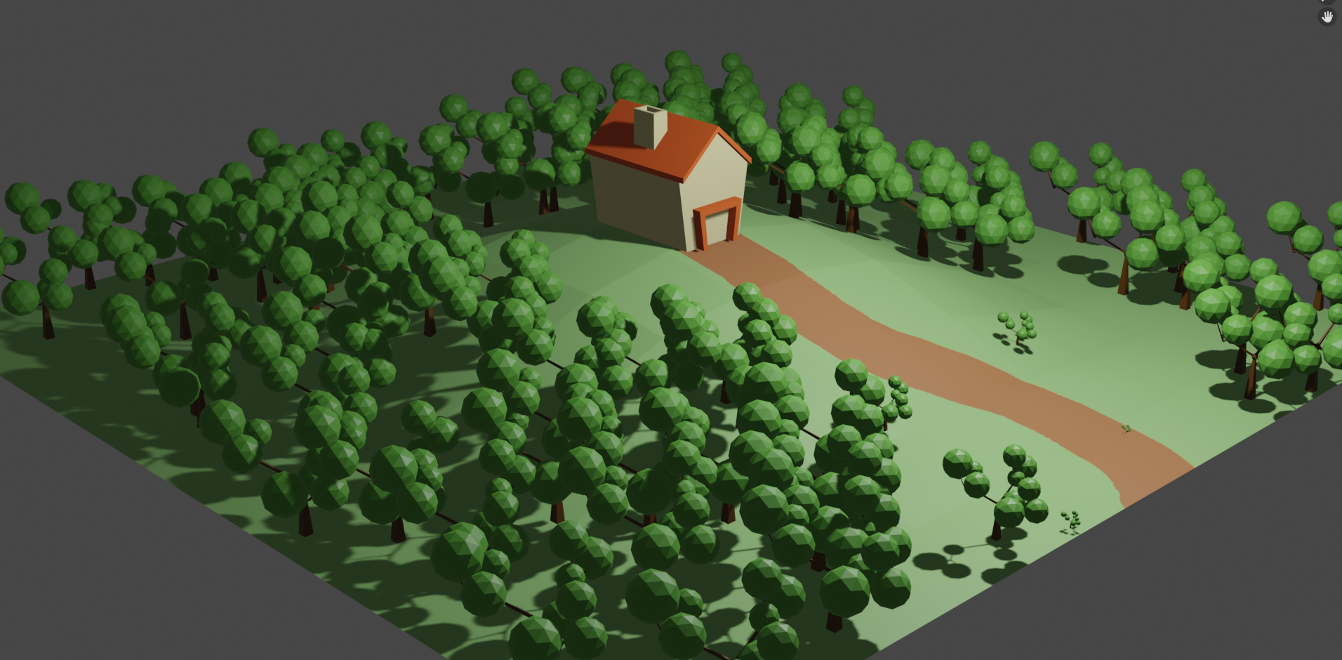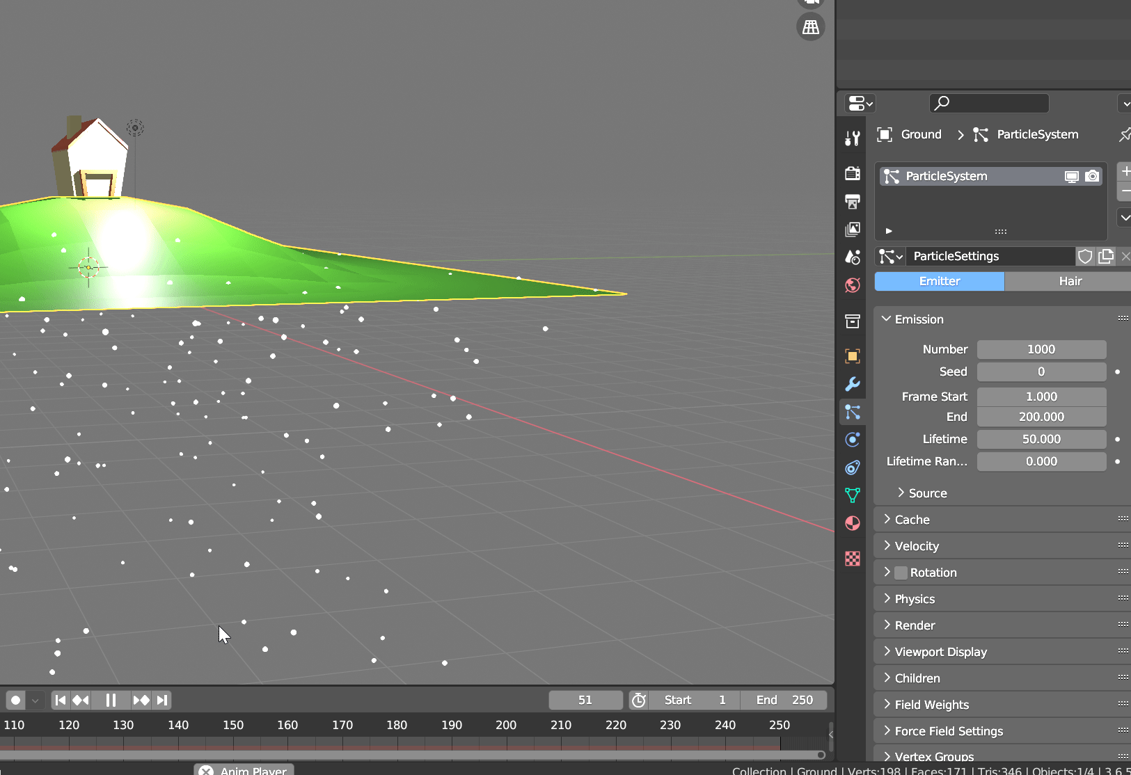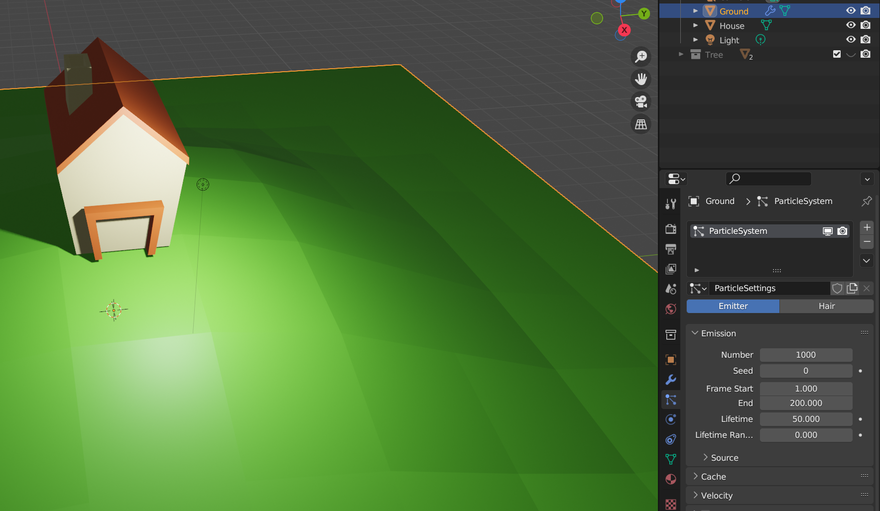 파티클 시스템으로 언덕에 나무 심기 위해서 언덕과 집을 만든다.