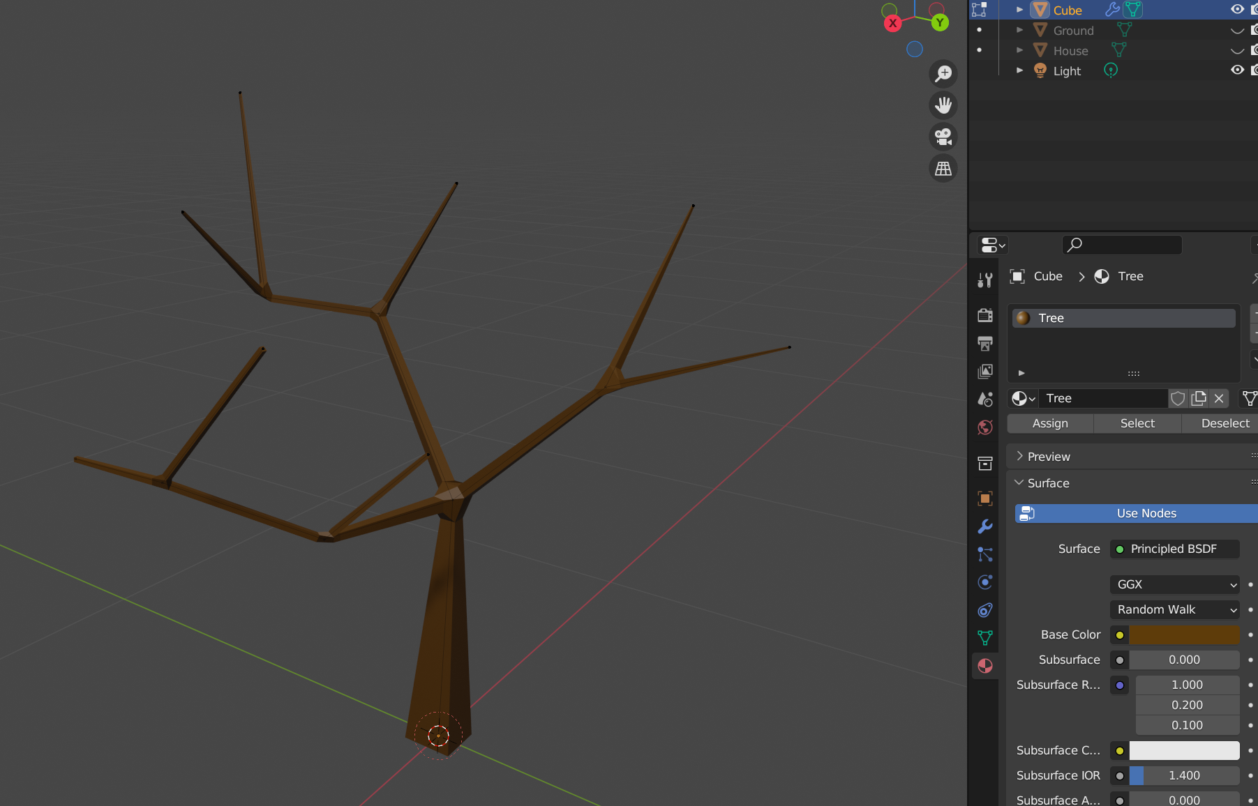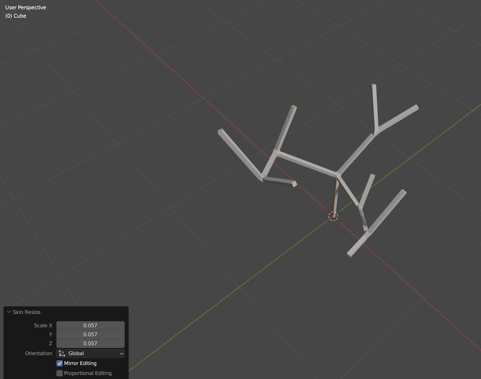이후 센터로 모인 버텍스를 Extrude 하여 나무 구조를 만든다.