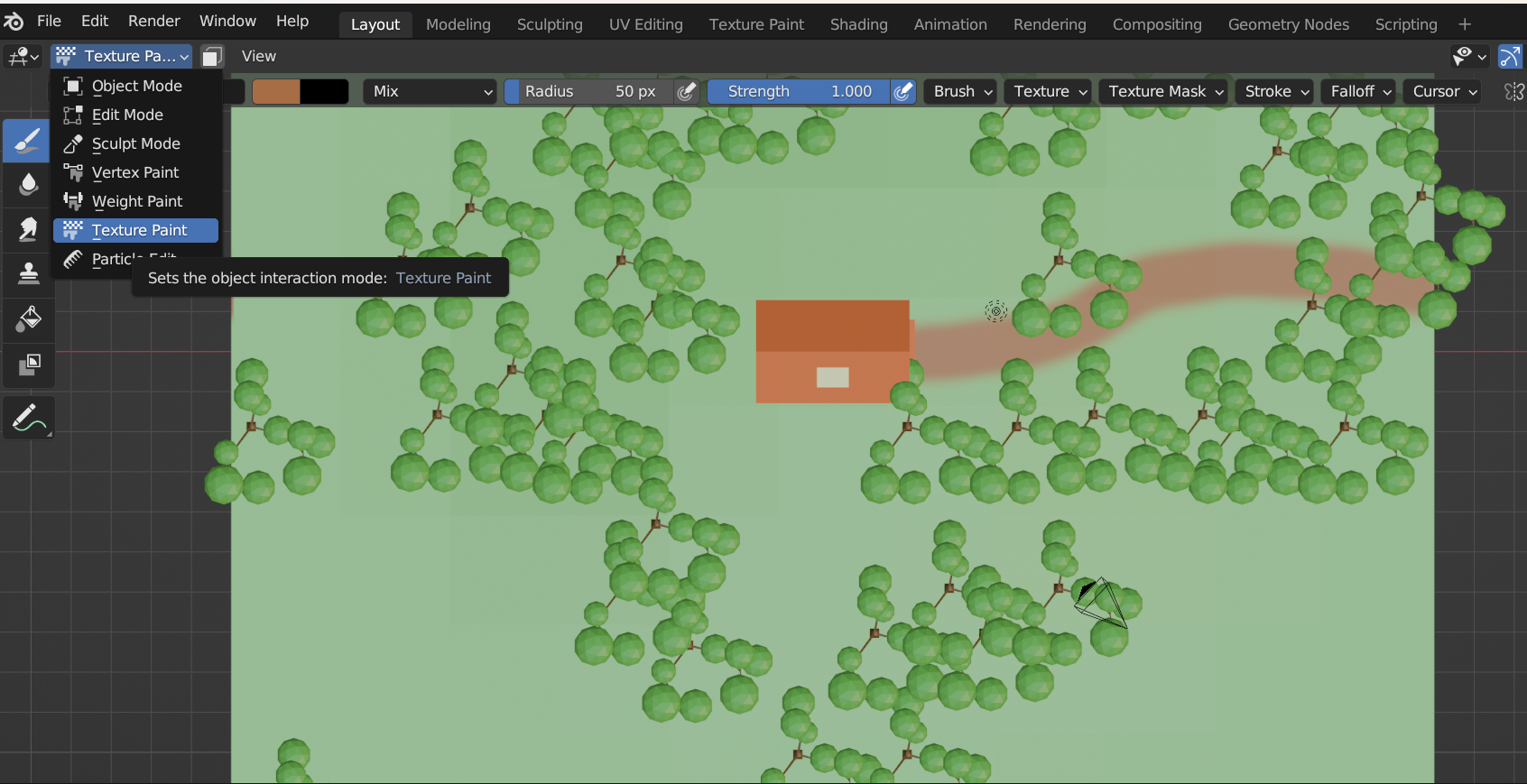 길을 그리기 쉽게 오브젝트 창에서 [Texture Paint] 설정 후 길을 그린다.