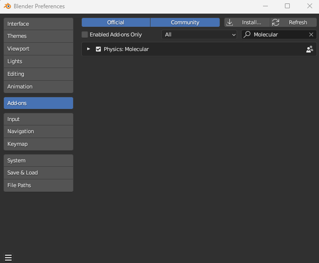 파티클 하나하나를 개체로 인식하기 위해서는 외부 Add-on을 설치해야 한다.