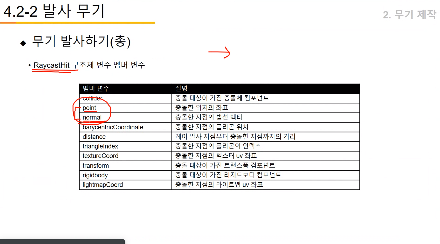bulletEffect.transform.forward = hitInfo.normal; //총알 효과를 Ray가 부딪힌 지점의 법선 벡터와 일치하도록 설정
