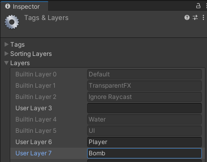 폭탄이 플레이어에 닿아도 터지지 않게 설정 -Layer 이용