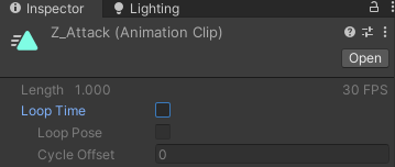 호출했을 때 애니메이션이 바로 나오려면 [Has Exit Time]을 체크 해제하면 된다.