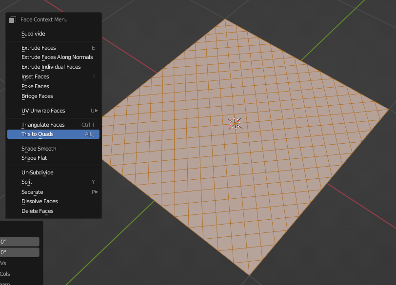 마우스 오른쪽 클릭 - [Tris to Quads]