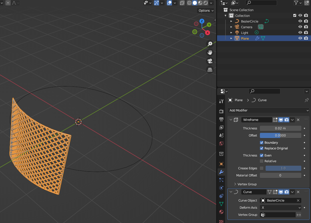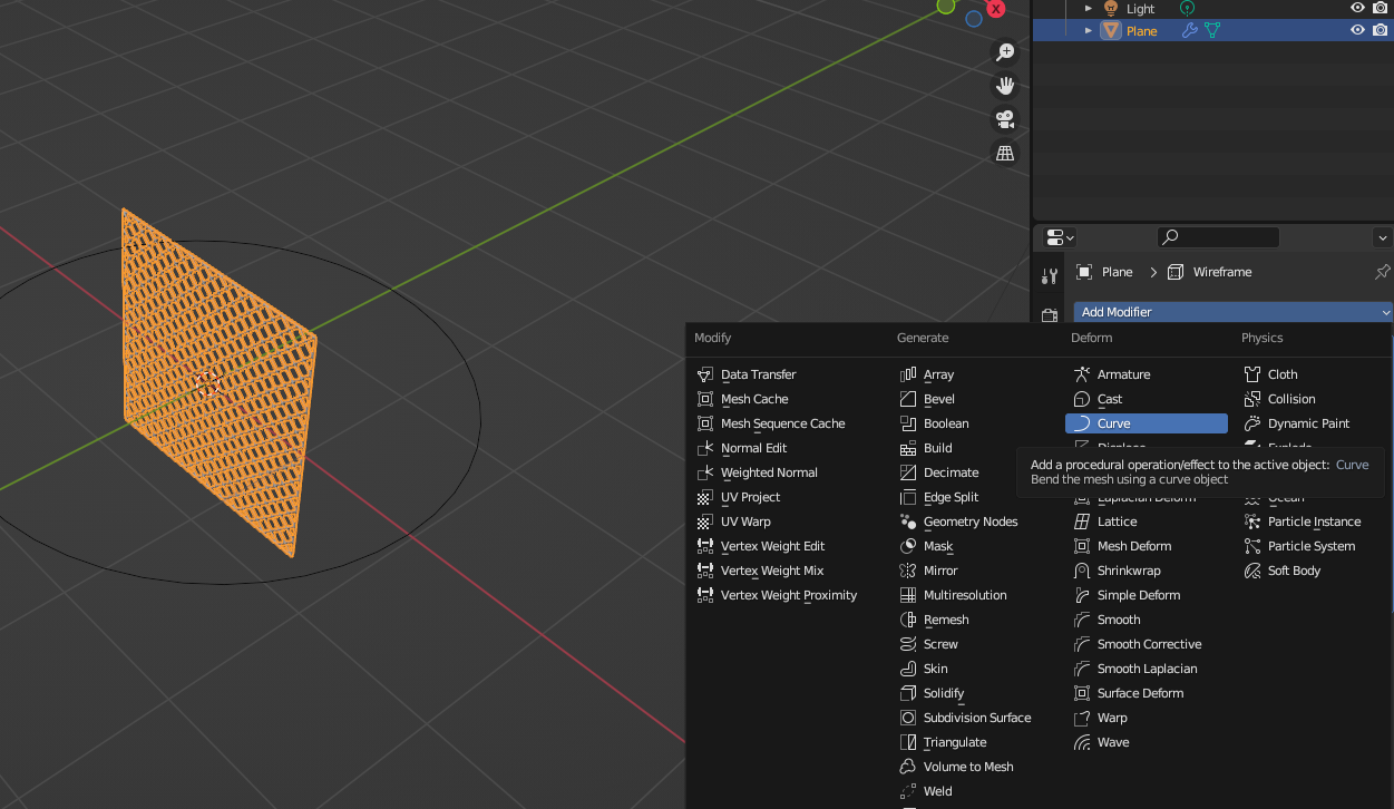 Plane의 Modifier - [Curve] 추가