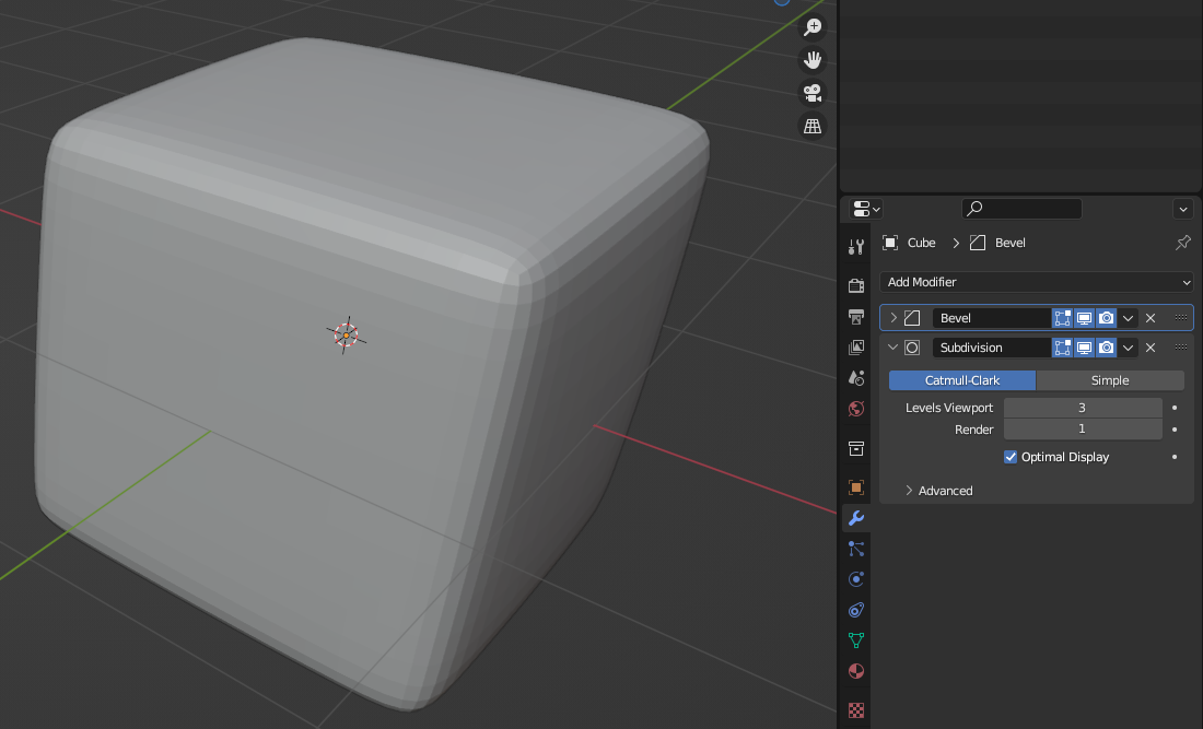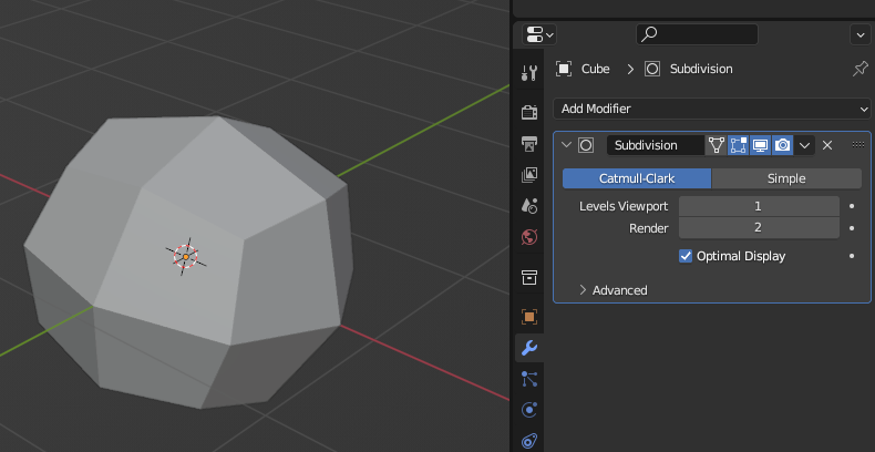 큐브에 [Subdivision Surface] Modifier를 적용하면 위와 같은 모양이 된다.