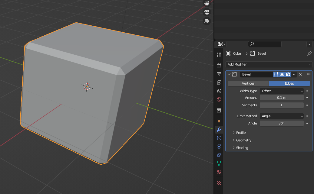 - 'Ctrl + b'는 특정 엣지를 넣는 것이고 Modifier의 [Bevel]은 전체에 Bevel을 부여한다.