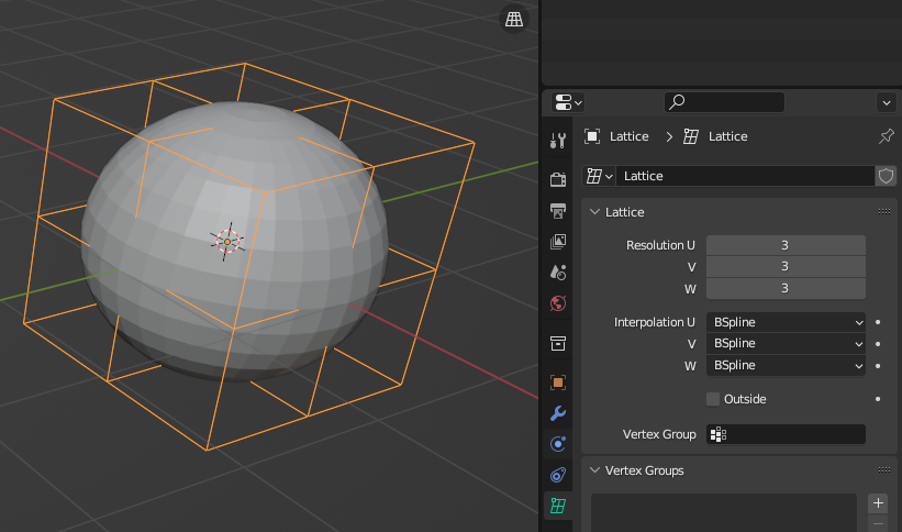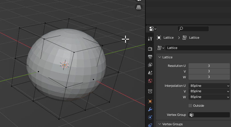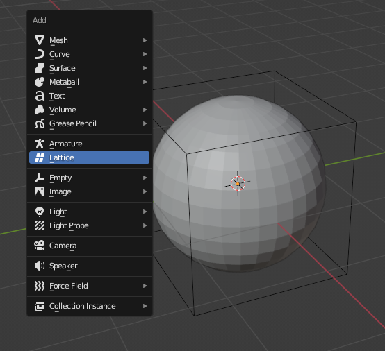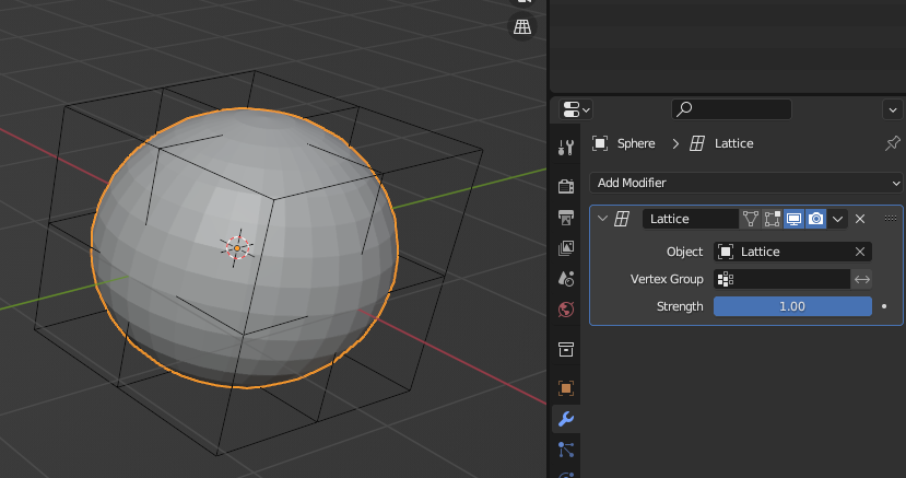 Sphere에 [Lattice] Modifier 생성, Object에 Lattice 연결