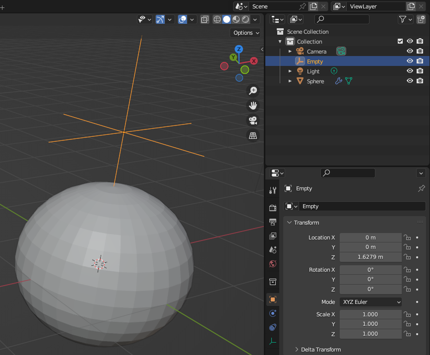 UV Sphere 생성, Empty 하나 생성