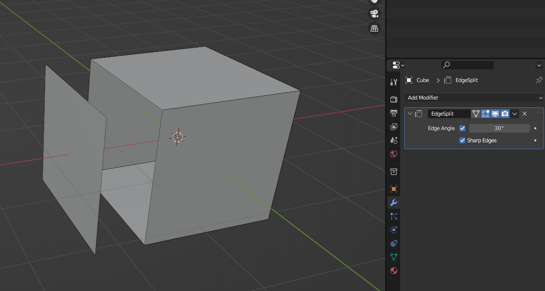 Edge Split을 Apply하면 Edge의 각도에 따라 면이 분리된다. 30도 보다 크면 자른다.