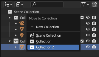 오브젝트 위에서 "M"키를 눌러서 Collection을 옮기거나 새로운 Collection을 만들 수 있다.