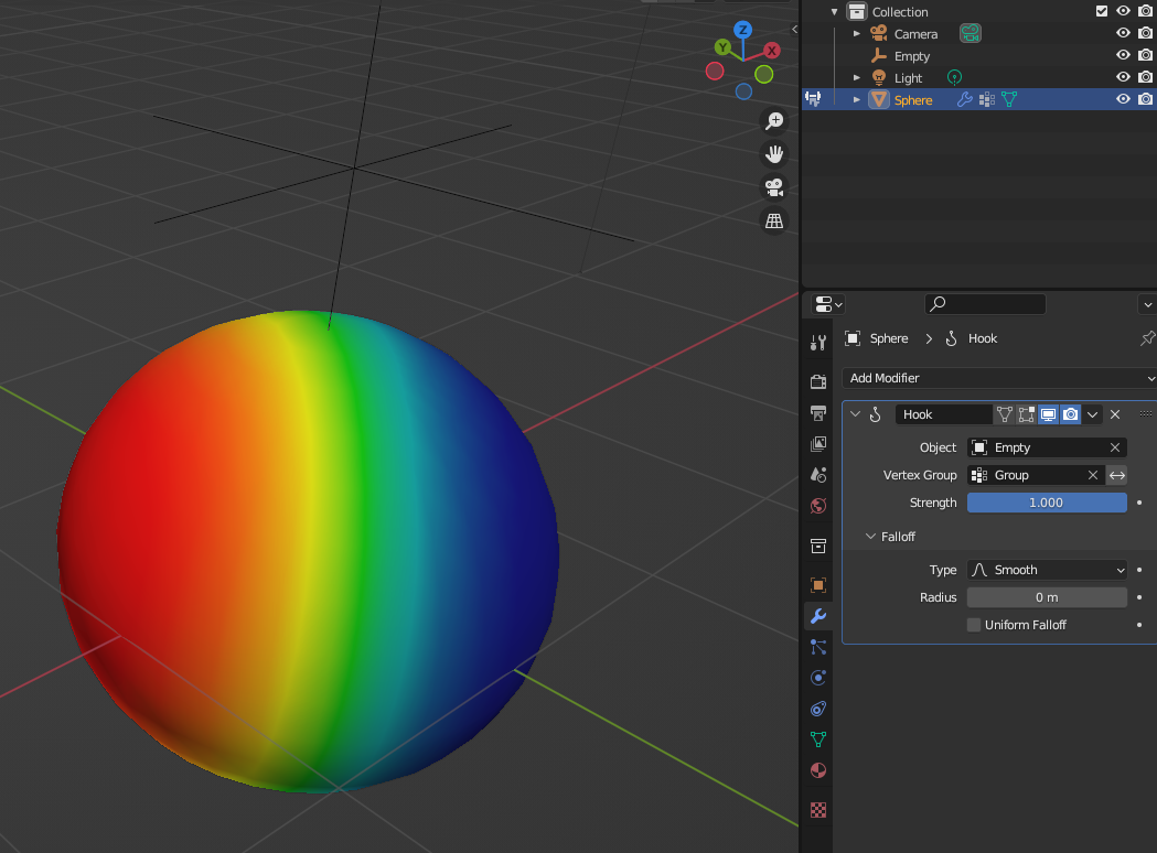 Weight Paint 준 후 설정하면 Empty 이동만 해도 Sphere가 같이 움직인다.