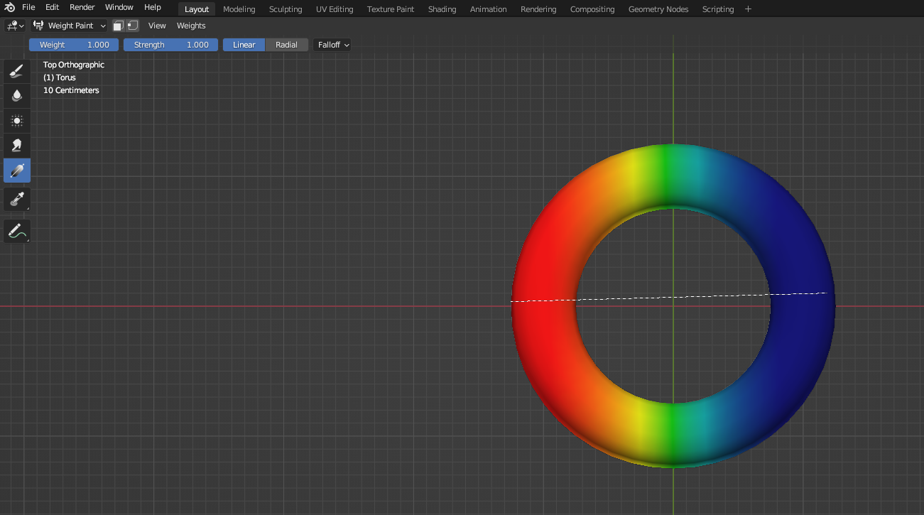 Weight Paint에서 먼저 [Gradient] 붓으로 칠한다.