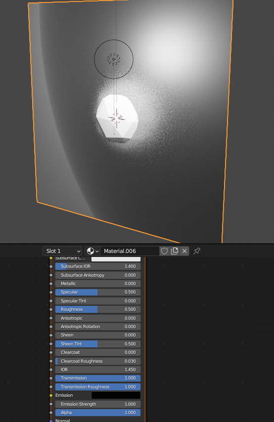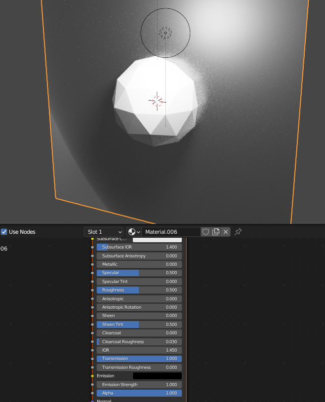 -Glossy BSDF: 빛이 특정 방향으로 강하게 반사되는 현상. 반짝이는 금속이나 유리 같은 재질에 사용된다.