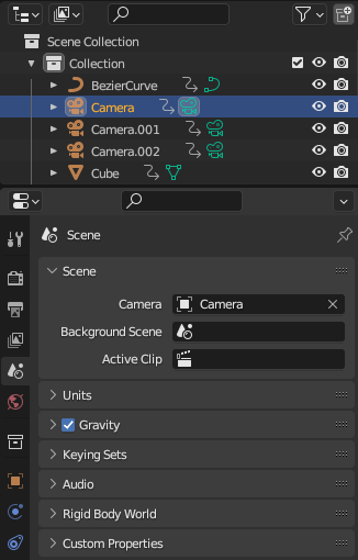 원하는 카메라에서 [Constraints] - [Track To]를 넣어주고 [Target]에 이동하는 물체를 넣어주면 적용된다.