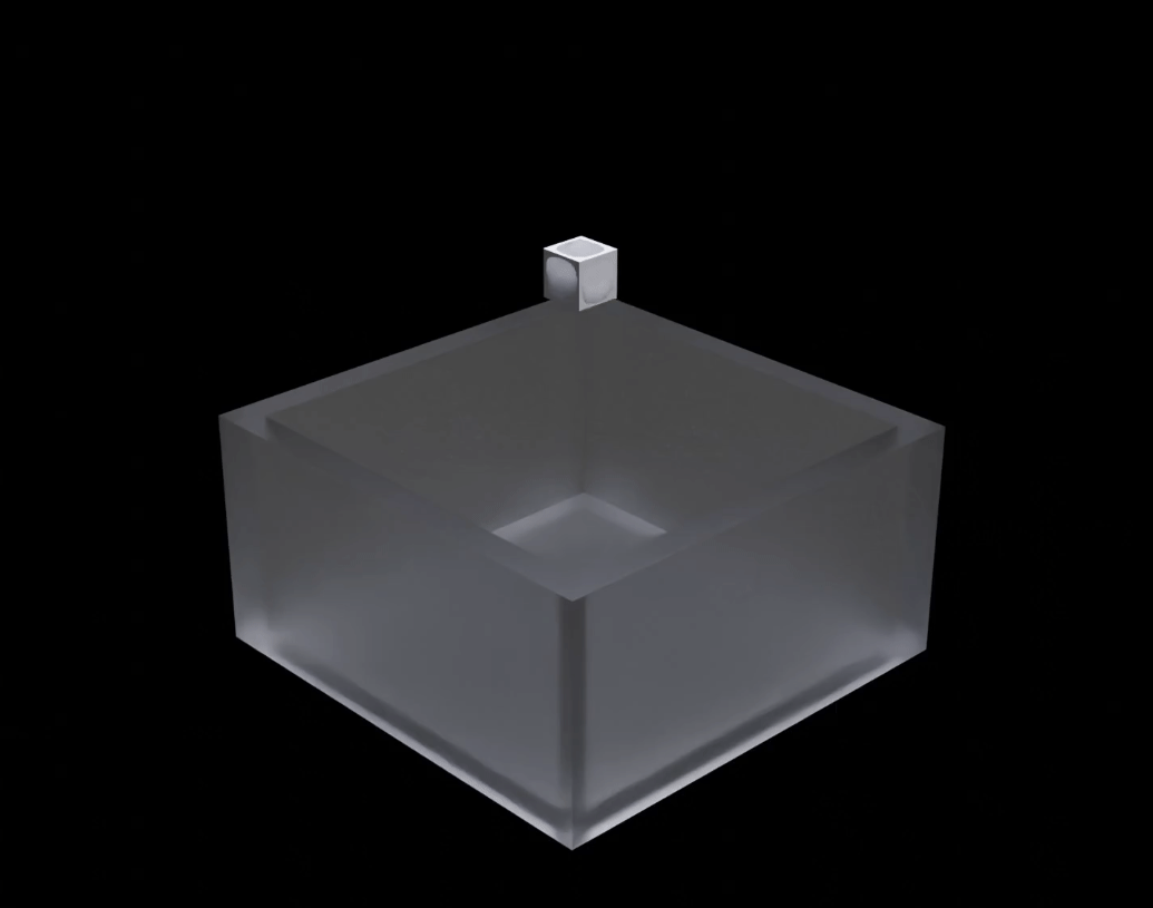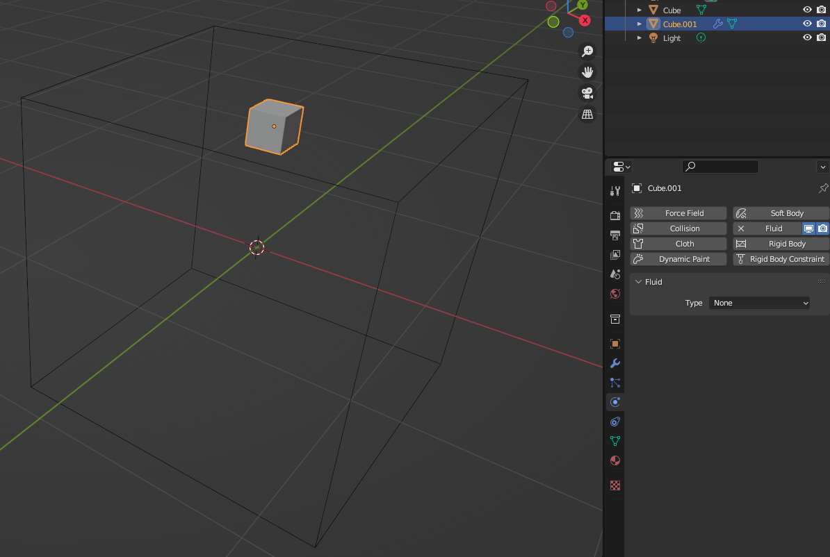 와이어 박스 안에 작은 큐브를 만들어서 [Constraints] - [Fluid]를 추가한다.