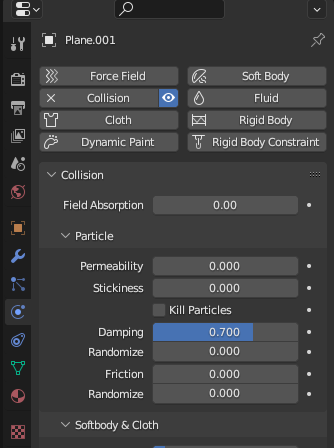바닥 Plane에서 [Collision] - [Particle] - [Damping] 값을 높이면 조금 덜 튀어오른다.