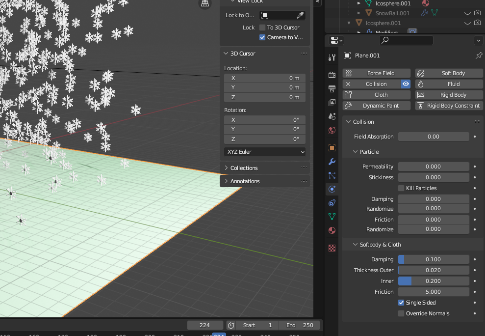 눈꽃 모양을 모델링하면 모양 그대로 파티클이 생성된다.