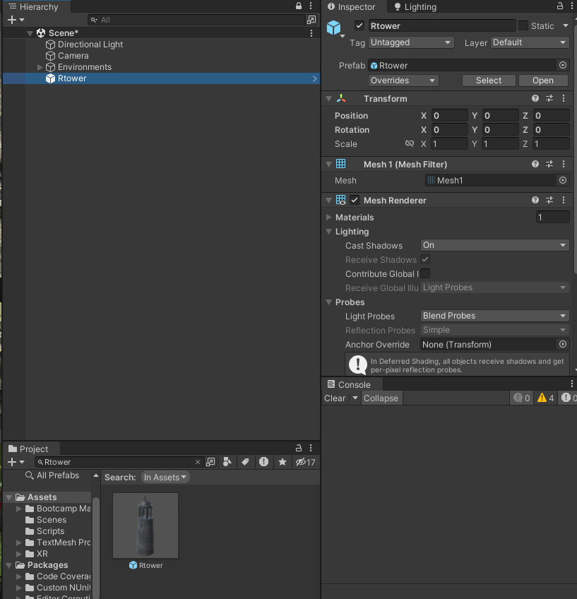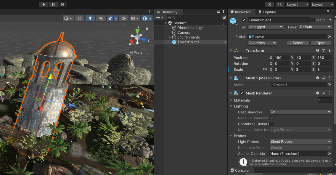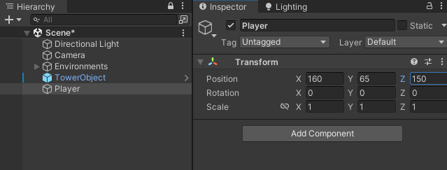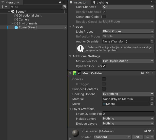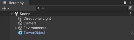 Rtower 에셋 Hierarchy에 배치, 이름을 TowerObject로 변경한다. 이름을 변경하는 이유는 나중에 AI를 위해서.