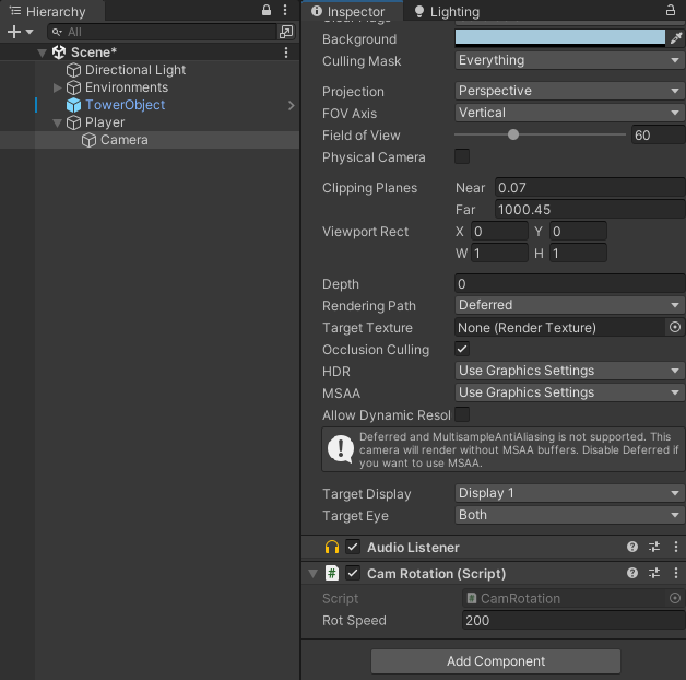 CamRotation 스크립트 생성 (**오큘러스에서는 시야 회전이 자동으로 된다.)