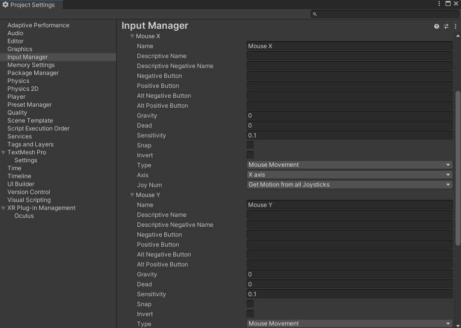 PC버전에서 마우스를 회전할 때 두리번 거리게 만든다. 먼저, Input Manager를 확인한다.