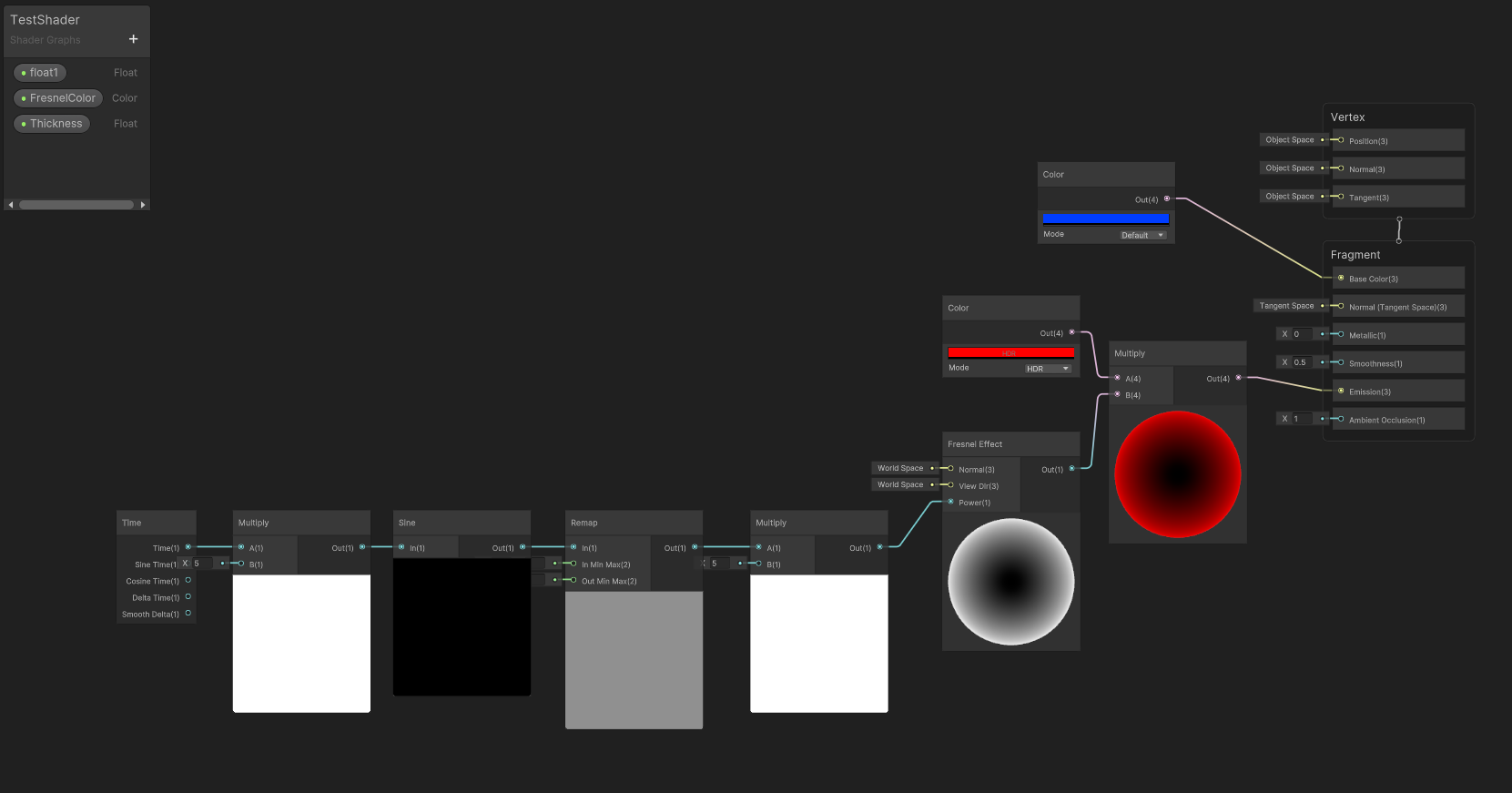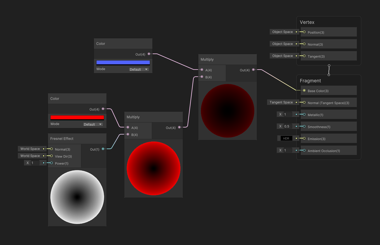 Fresnel Efffect, Multiply 노드를 이용해서 Color와 연결한다.