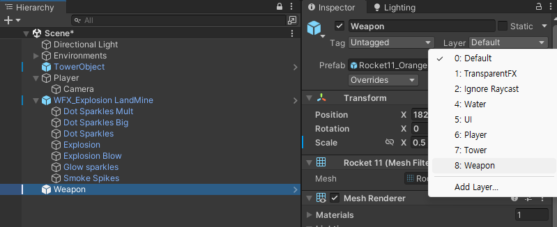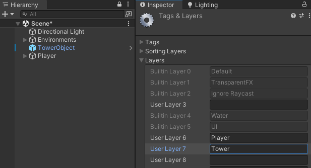 Player에 Player 레이어 추가, Tower에 Tower 레이어 추가