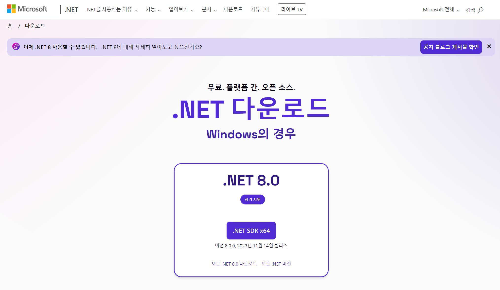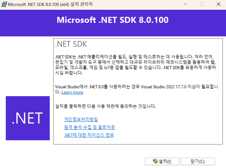 .Net 8.0 다운로드