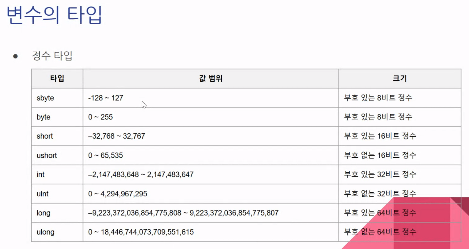 변수의 자료형