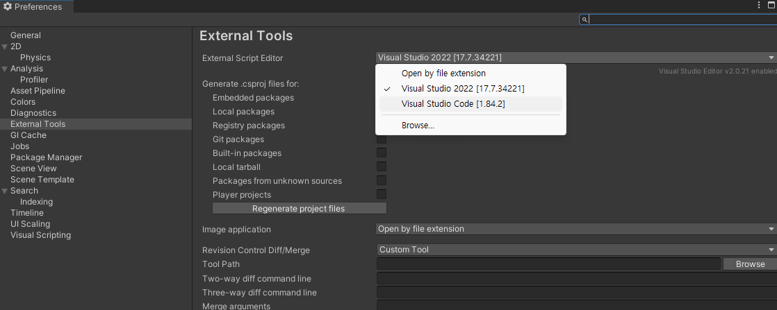 External Tools - [Visual Studio Code]를 선택한다.