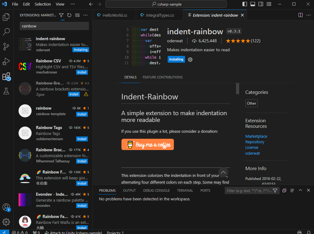 Indent를 좀 더 확실하게 구분하기 위해서 indent-rainbow를 설치한다.