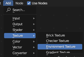 배경 색 말고 HDRI 적용을 위해 https://polyhaven.com/ 에서 HDRI를 다운받은 후 [Add] - [Texture] - [Environment Texture] 로 셰이더를 추가하여 이미지를 넣는다.