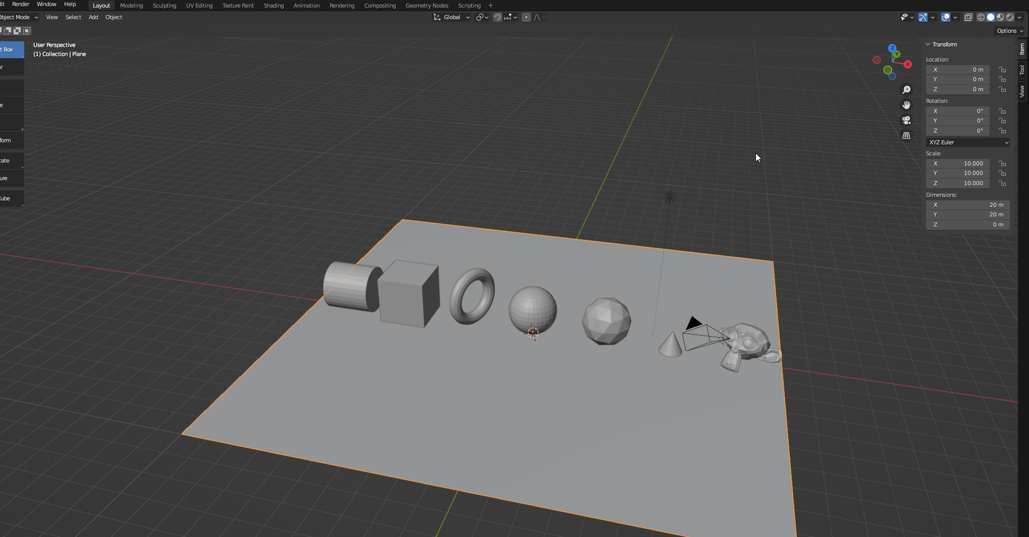 스케일 : S (+X, Y, Z 눌러서 축으로 스케일 조정 가능)