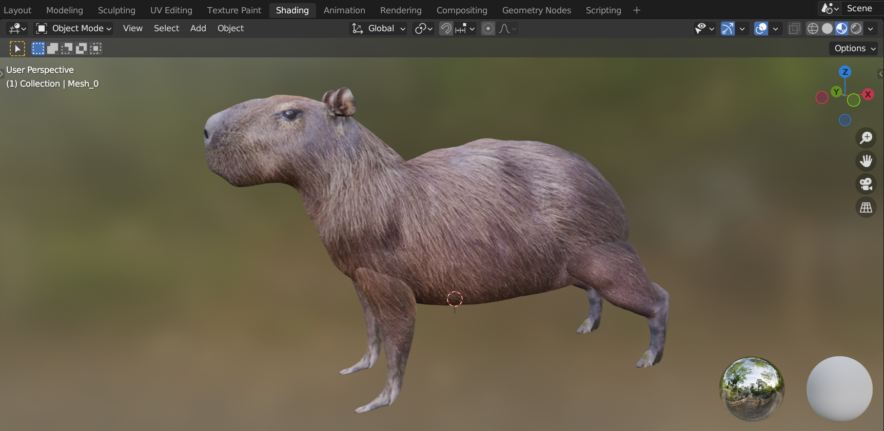 오브젝트 모드로 편집도 가능하며, [Shading] 탭을 들어가보면 이미 텍스쳐가 입혀져 있는 것을 볼 수 있다.