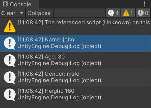 Debug.Log("Age: " + person.age);