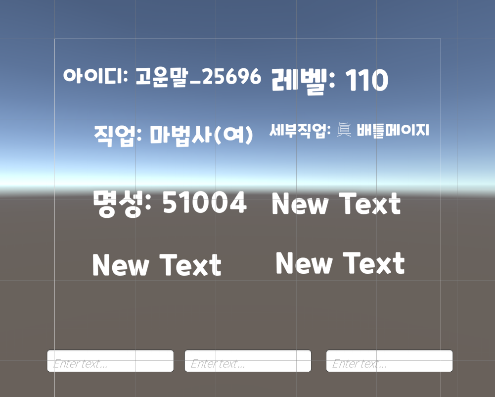 character 정보가 유니티의 Text 상에 표시되도록 구현하였다.
