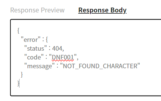 바로 직전에서 보았던 "서버 이름"과 "캐릭터 명칭"이 아닌 "서버 이름"과 "캐릭터 고유 코드"가 필요함을 알 수 있다.ㅡ