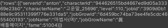 이전에 캐릭터 정보에서 Console창에 나왔던 문자열 중 "characterId"에 쓰인 문자열을 가져가다가 사용하면 된다.