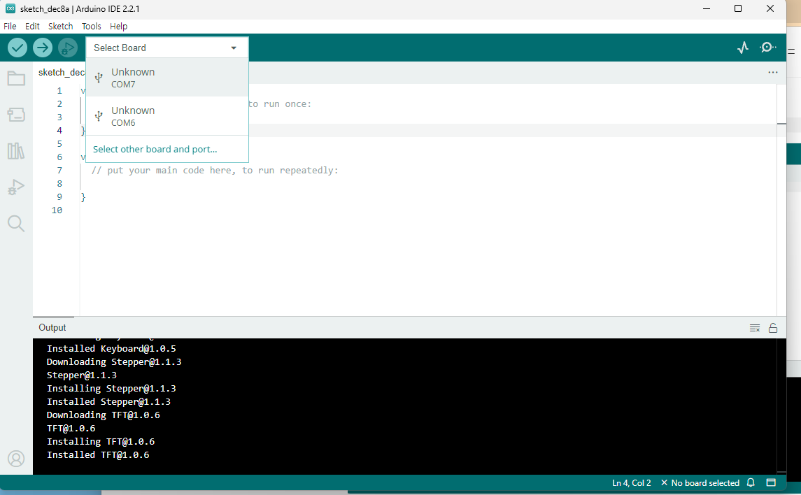 컴퓨터와 아두이노가 연결되면 장치관리자에 Port가 뜨며 Arduino IDE에서 Arduino Uno를 해당 포트에 연결한다.