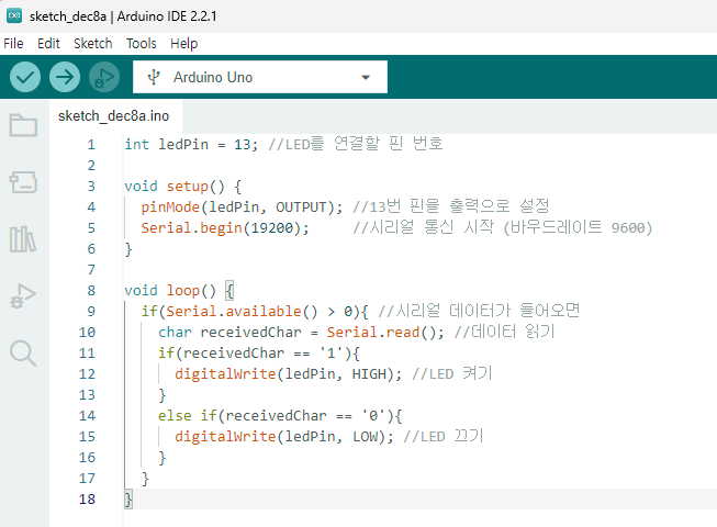 serialPort.Write(ledState ? "1" : "0"); //아두이노에 데이터 보내기