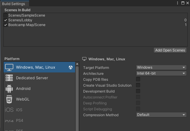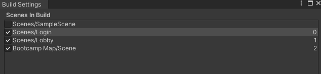 씬 전환을 위해 Build Settings에 Login 씬 추가