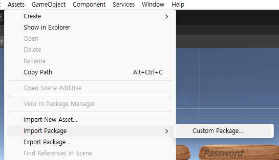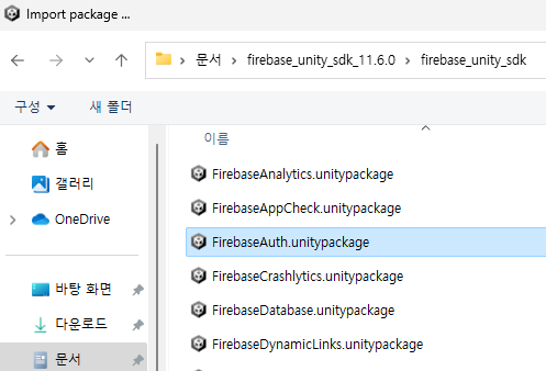 FrebaseAuth.unitypackage SDK를 import 한다. [Assets] - [Import Package] - [Custom Package...]