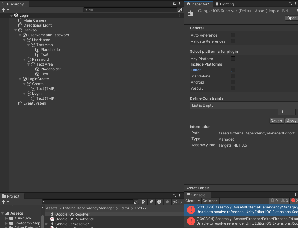 다음 오류는 UNITY_IOS를 입력하고 Apply해서 해결한다.