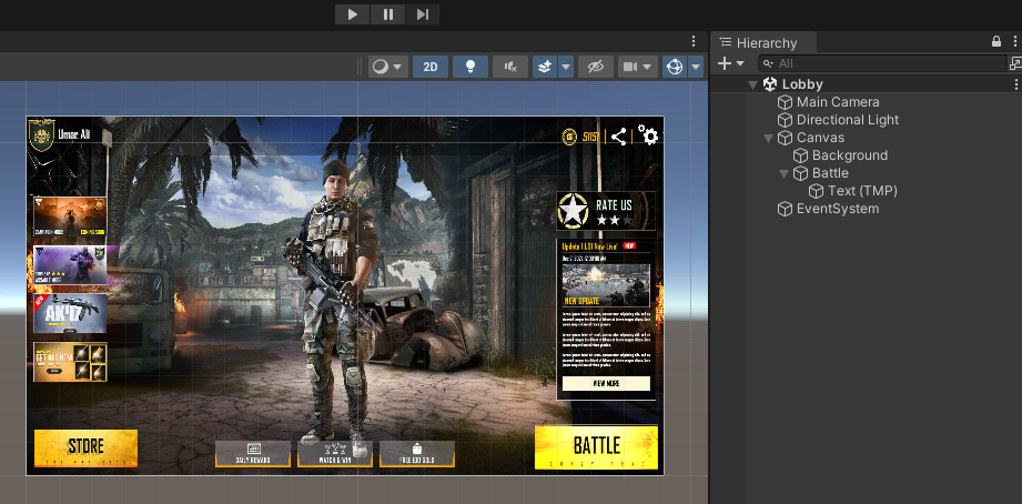 로비 씬 UI를 설정한다. 이전에 FPS 게임에서 썼던 로비씬 이미지와 같은데 뒷 배경이 이번 타워디펜스 게임에도 잘 어울릴 것 같아서 그대로 적용해본다.