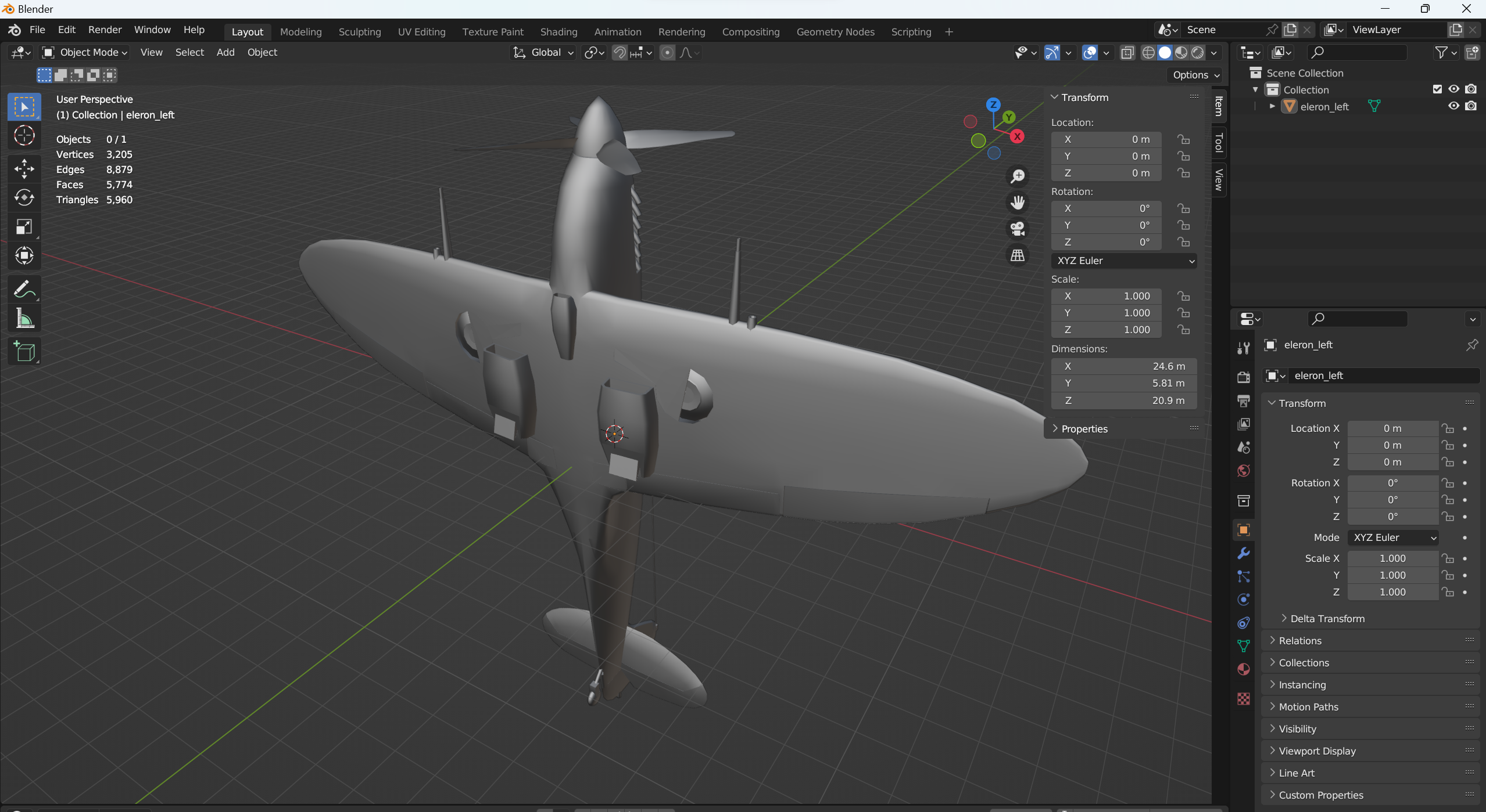 유니티에서 프로펠러쪽이 땅에 박혀서 다니는 형상이어서 아예 블렌더에서 Rotation을 적용했다.