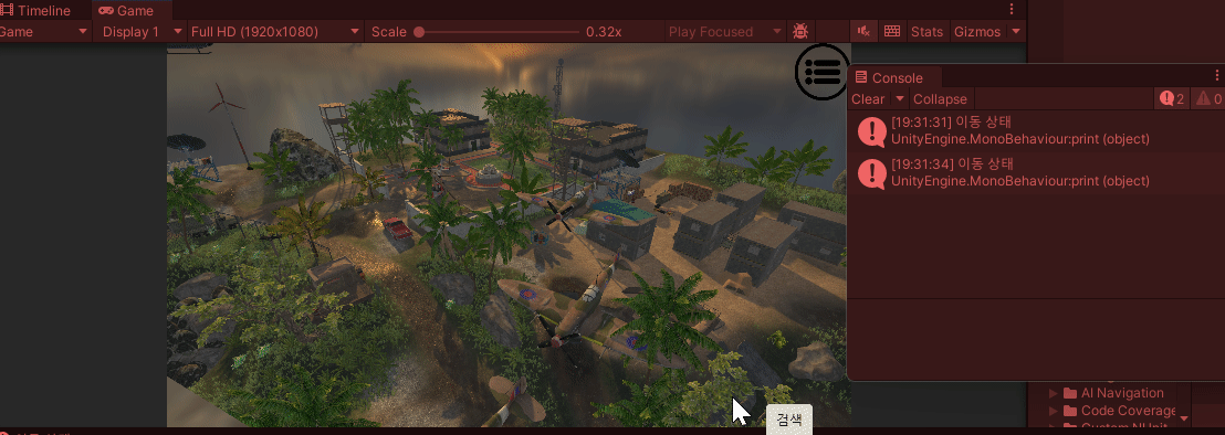조금의 로딩 시간이 필요하지만 씬 전환이 잘 된다.